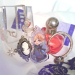 A holographic double sided acrylic charm with two different illustrations. One side displays the character Vil Schoenheit in his dorm uniform and the other displays his Overblot form.